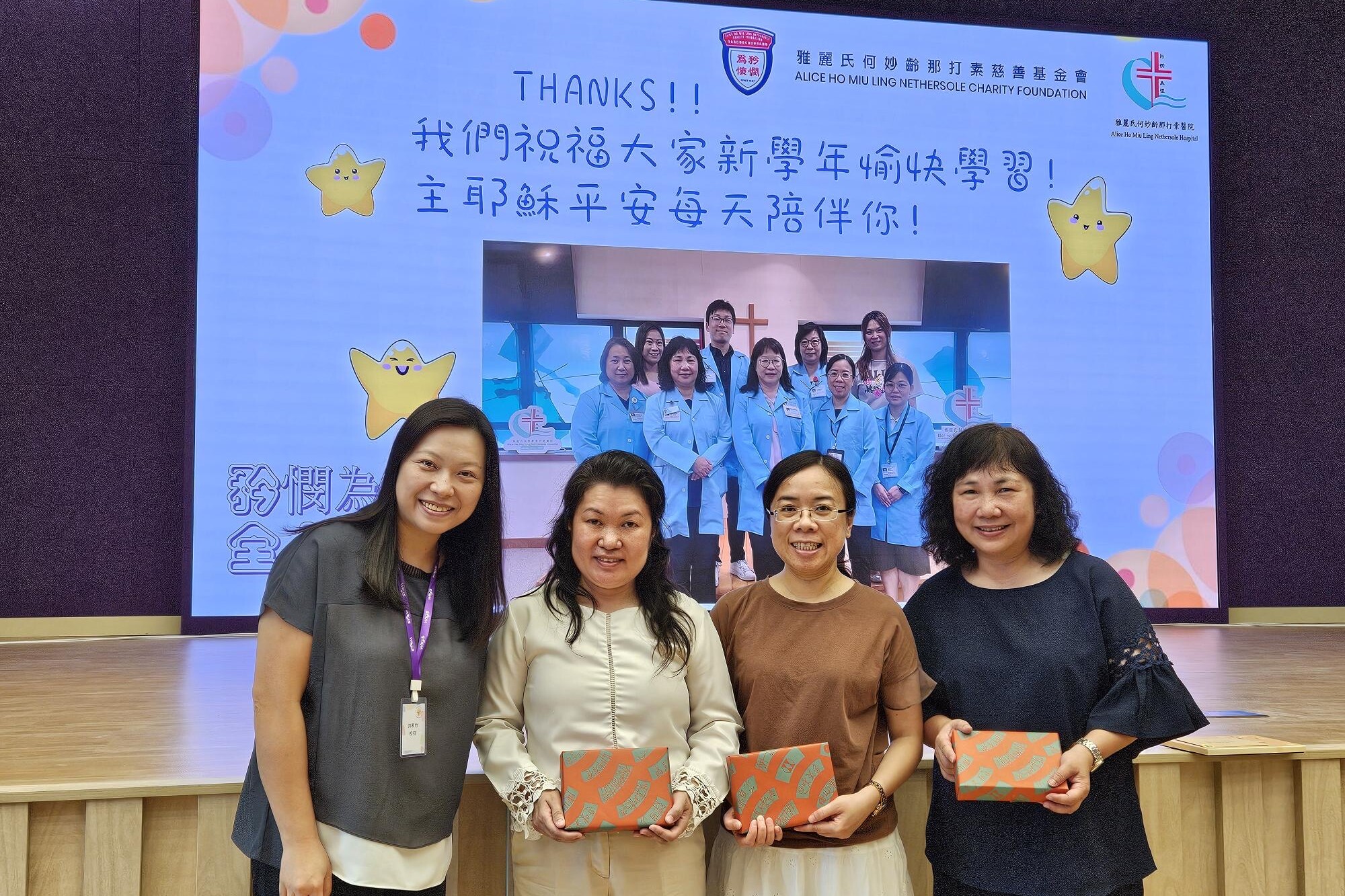 孩子書寫心意卡,向該院的醫護人員及員工送上祝福。…