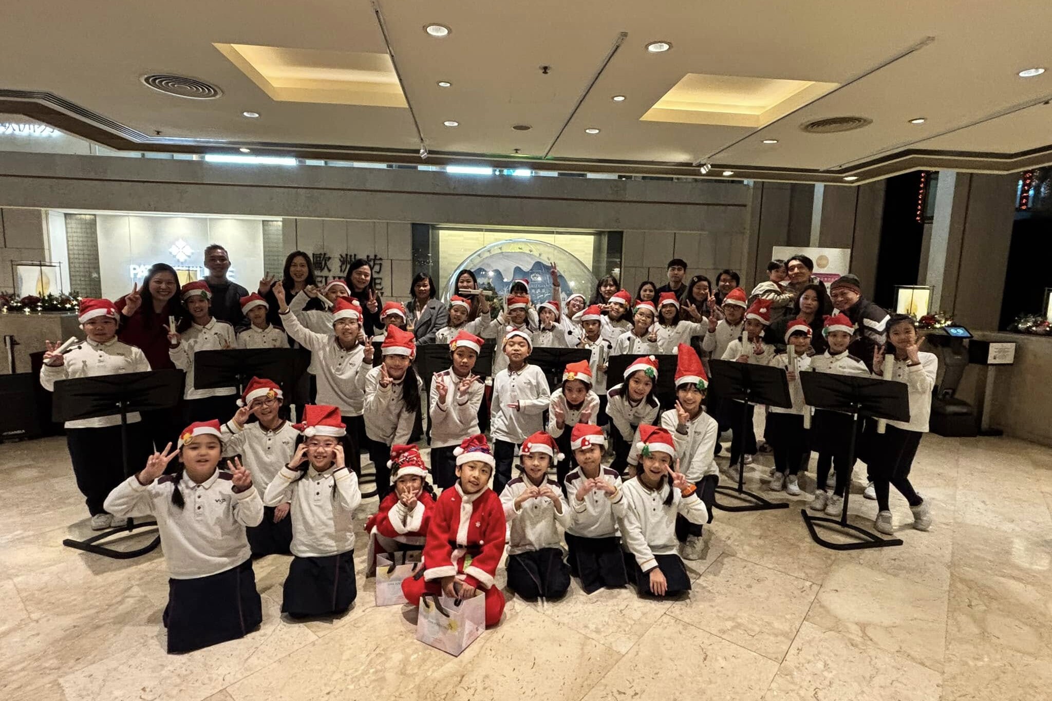 在平安夜那天,合唱團、手鐘隊到尖東帝苑酒店報佳音。…